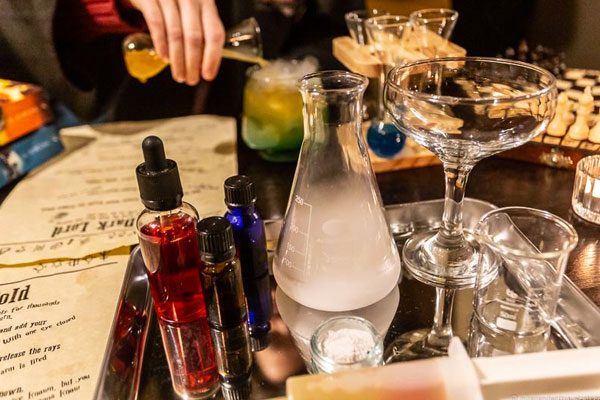 Designed to complement the escape rooms, Magic Potions Tavern focuses on the best part of being a witch or wizard; Brewing your own potion cocktails!